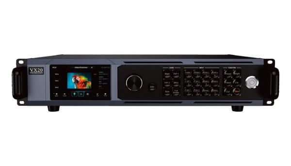 VX20 is capable of handling up to 13.1 million pixels, and features HDMI 2.0, DP 1.2, 12G-SDI, and HDMI 1.4 input ports for 4K video input. It can also transmit processed video content to LED displays via 1G Ethernet or 10G fiber ports. It supports 8/10/12-bit video input and 8/10-bit video output at super high definition, and allows for scaling and cropping of videos while maintaining high visual fidelity. Moreover, the device supports the display of BKG, OSD, and logos, and provides Multiviewer at high resolution.