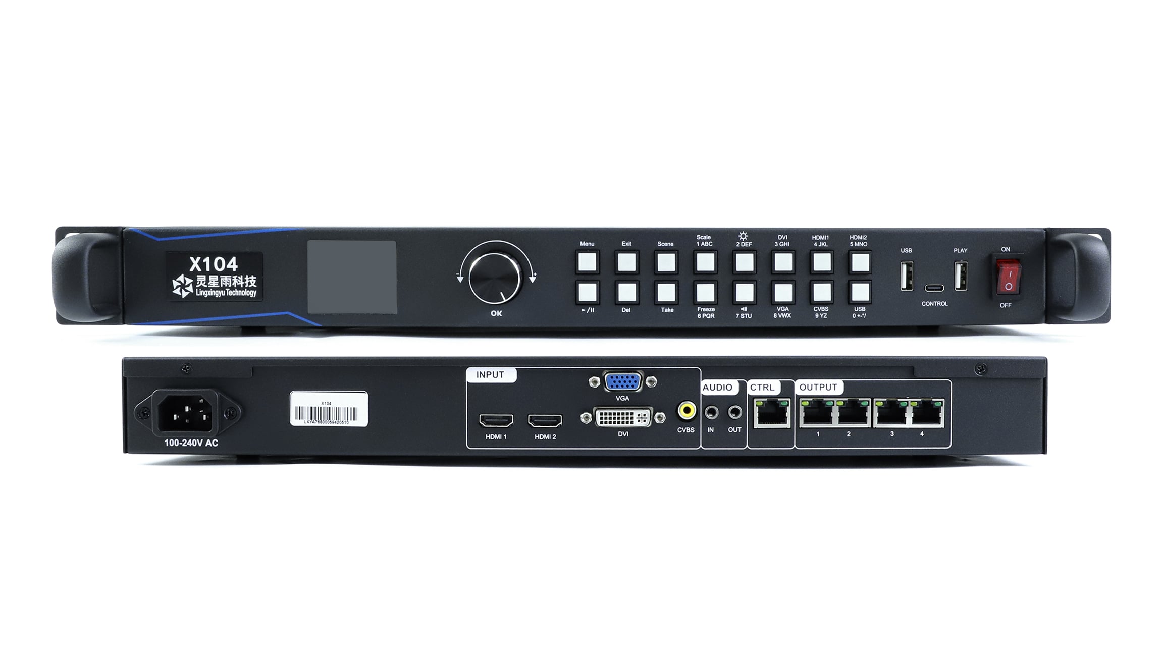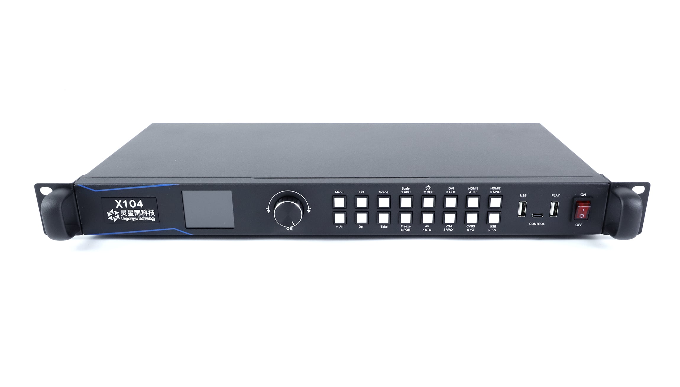 X104 designed for small fixed installation LED screen, which is a cost-effective all-in-one video processor. It integrates sender, video processor and supports USB-flash-drive plug and play. It supports up to 2.3 million pixels: up to 3840 pixels horizontally or 1920 pixels vertically.