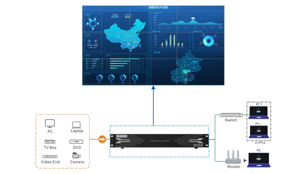 The EL2000 is a high-performance video wall splicer with a pure hardware architecture. Based on the powerful hardware FPGA system architecture and modular design, the EL2000 features a stable and highly efficient pure hardware architecture, and supports the access of multiple input sources.